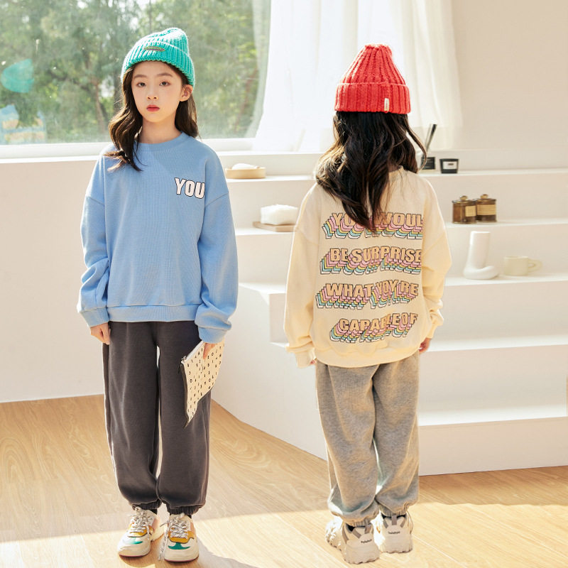Girl's thick T-shirt Chunqiu Great children's tennis Red girl clothes 2022 new wave trendy Han Fan Chauded Early autumn blouses foreign pie