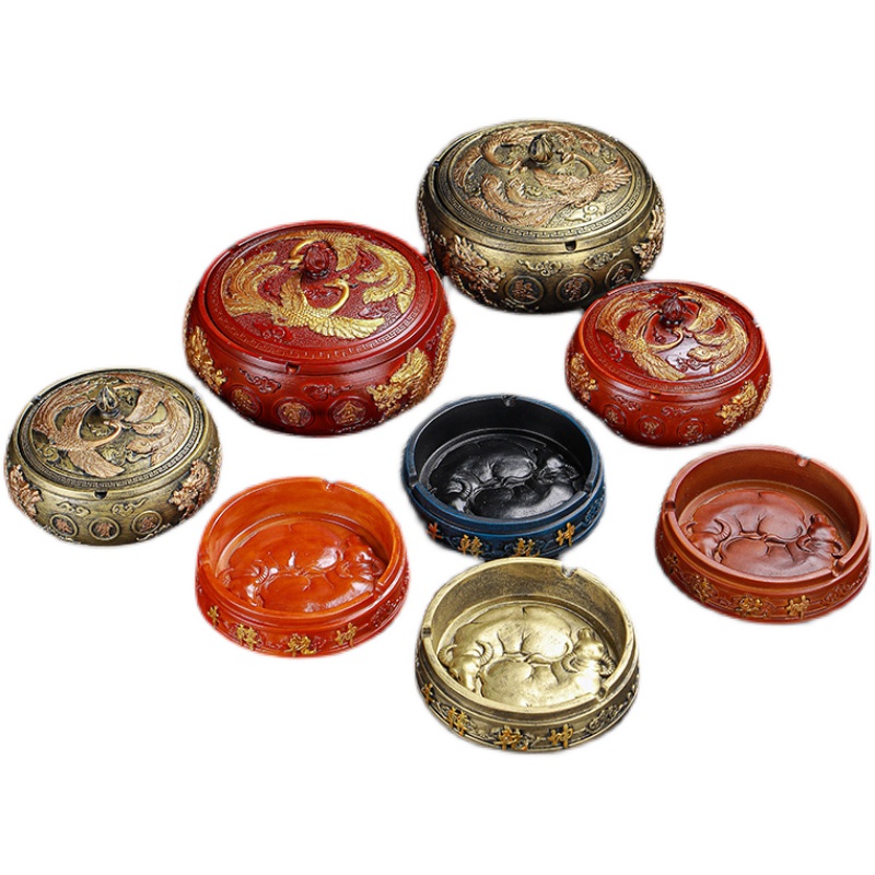 Dragon Feng pattern golden cigarette ash tray with lid large dragon and pineapple pattern orange red cigarette ash Ashtray Belt Number Large Dragon Phoenix Pattern Golden Cigarette Ashtray With Cap Dragon Pineapple pattern Orange Red Cigarette Ashtray Belt Number Bull turns dry Kun