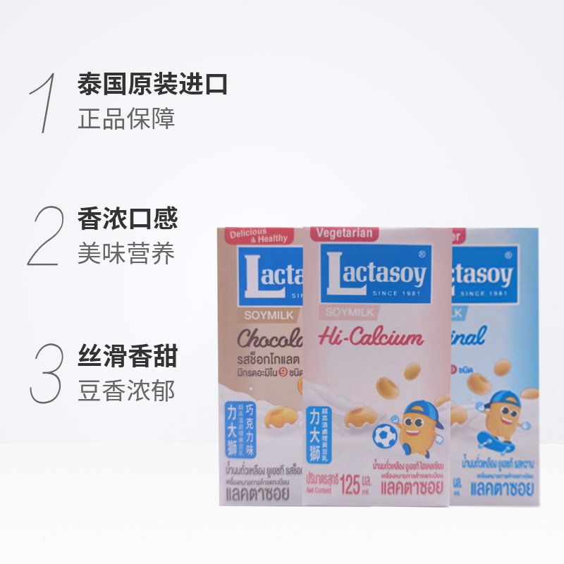Thai Import Power Large Lion Bean Milk Lactasoy Boxed Original Taste Chocolate Taste High Calcium Bean Milk Drink Drink