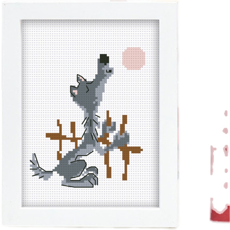 Cross stitch desktop decoration small howling wolf optional finished or semi-finished product
