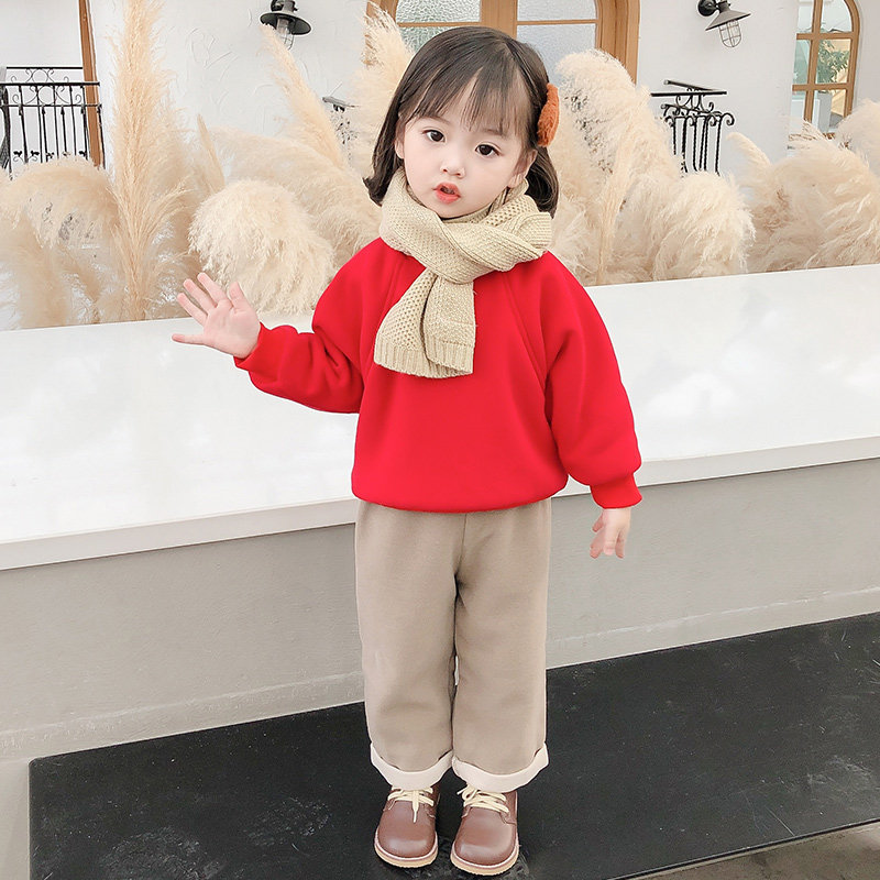 Hong Kong girl's winter clothing suit 2021 new female baby plus suede round thick cotton T kiddie warm clothes two sets
