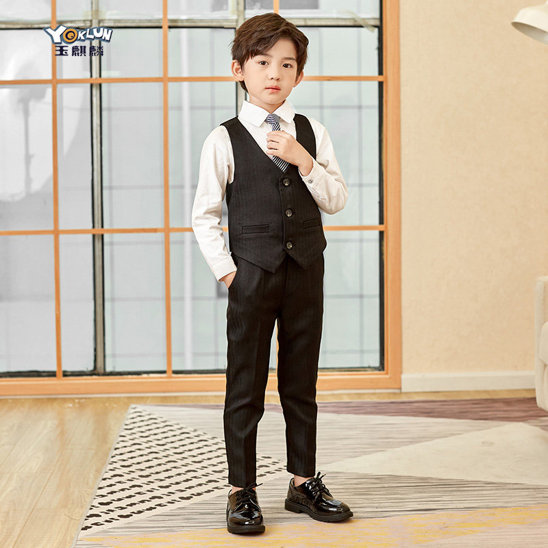 Boy suit suit handsome flower boy gown Inn Wind Small host waistcoat Three sets of children Western suit Cavet-Taobao