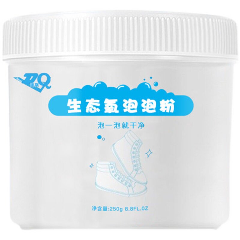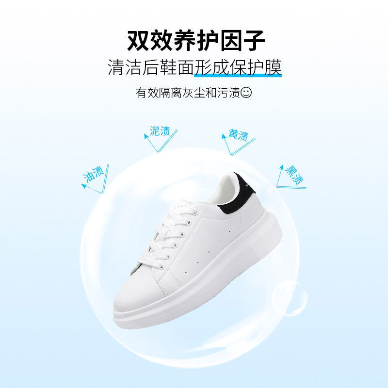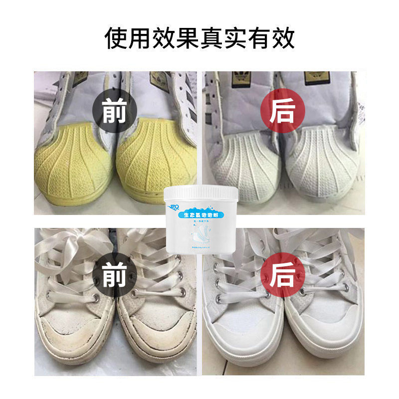 Small white shoes ecological oxygen bubble powder removes mildew stains and mud stains