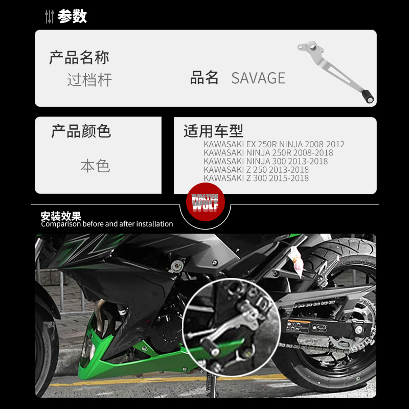 Suitable for KAWASAKI Kawasaki ninja 250300 overshift lever ninja300 variable-speed lever Z300 Shift lever