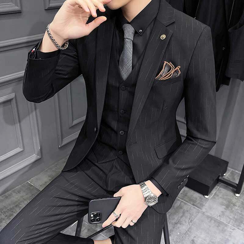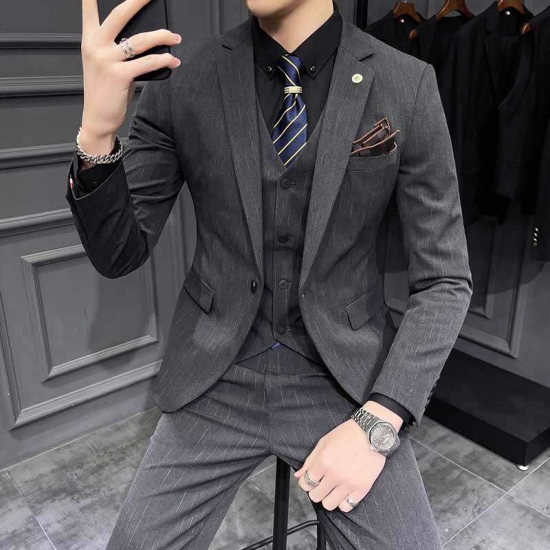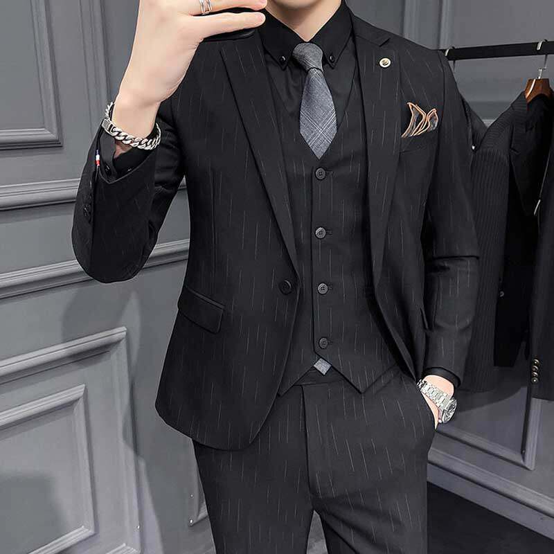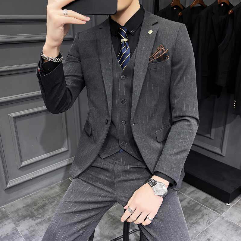 Advanced Sensation Fashion Trends Fashion Trends Gradual Layer Handsome Leisure Business Suit Three Sets Youth Korean Version Ssuit Suit