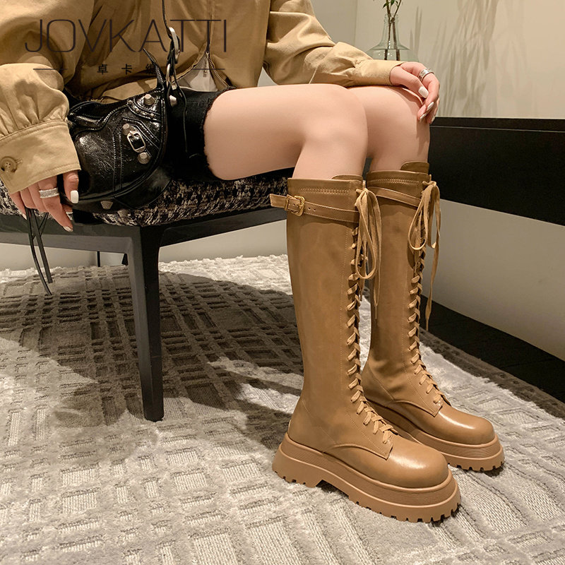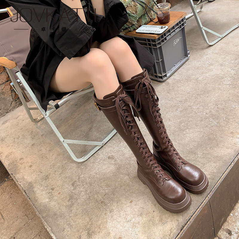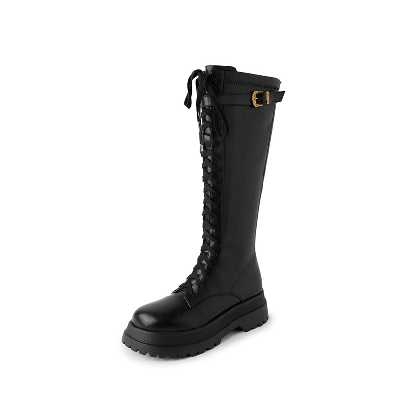 Long tube Martin boots women's thick heel thick bottom autumn and winter 2022 new black belt buckle strap high tube elastic knight boots