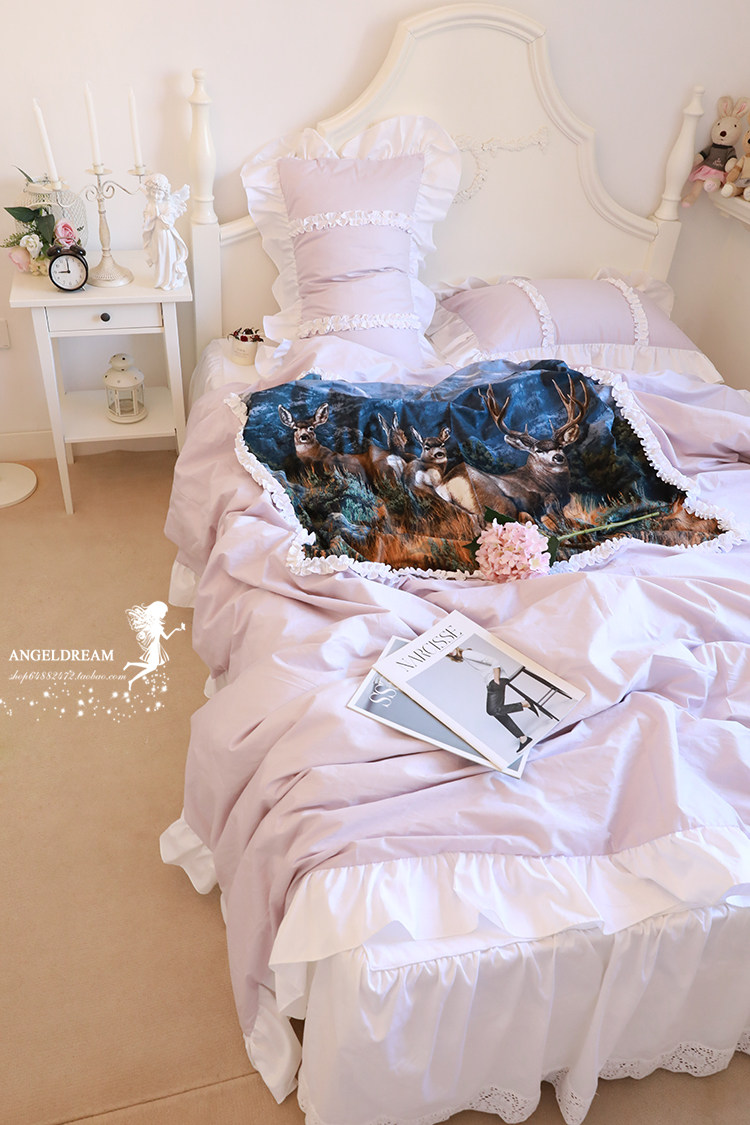Fa-style original ancient pastoral garden (white bed skirt princess pieces) French style original ancient pastoral garden (purple bed skirt princess piece cover)