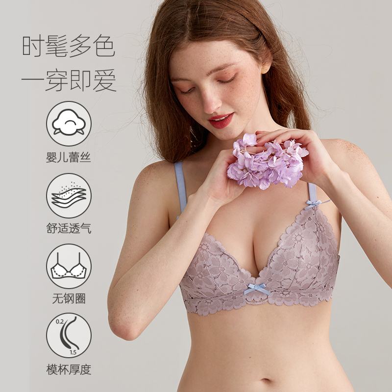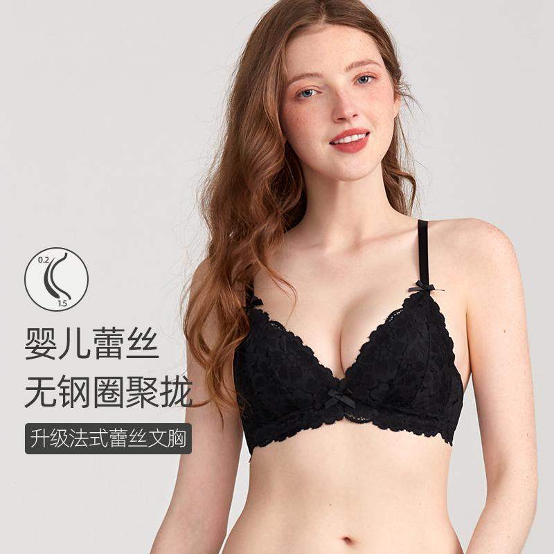 Curious Mies French underwear women's small breasts gather without steel ring triangle cup bra set lace sexy bra women