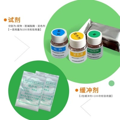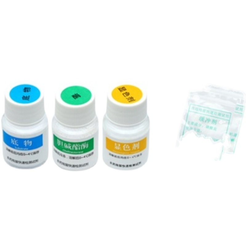 Enzyme substrate color renderer 1 bottle of buffer 2 packet of enzyme substrate 2 bottle of buffer 4 packet of enzyme substrate 3 bottle of buffer 6 pack of enzyme substrate 6 pack of enzyme substrate color renderer 5 bottle of each