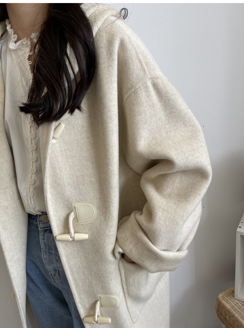 Even hat-horn button bifacial cashmere dresses The long version of the new South Korean high-end thickened Mao jacket 2021