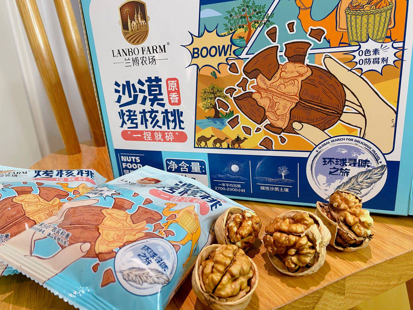 Lambo Farm Desert Roasted Walnuts Original Flavor Crush nut snack bag in a 1000g gift box