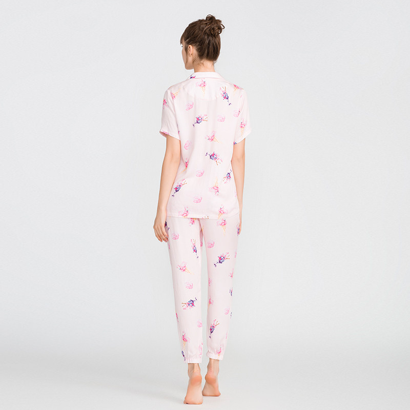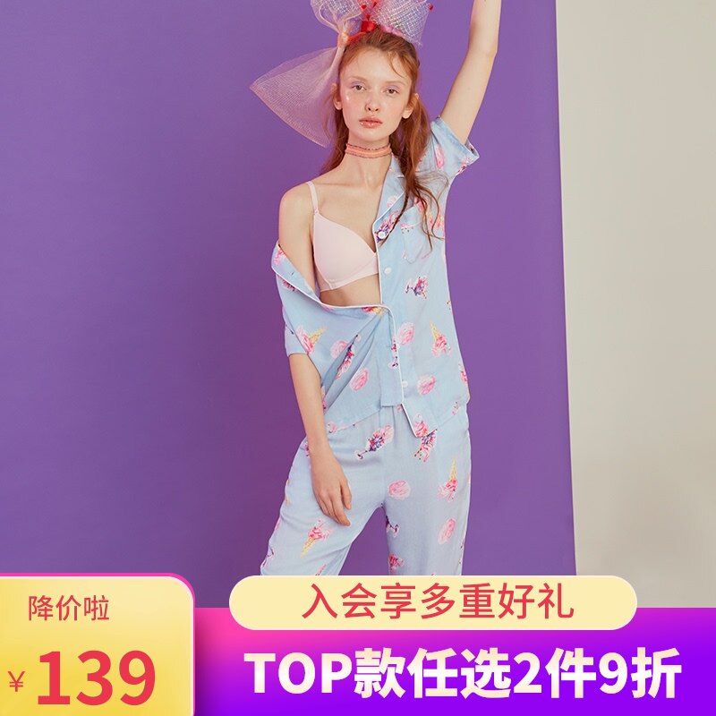 Love Beautiful Official Pyjamas Lady Spring Summer Thin light glossy printed sleeping pants Home Suits Suit IM47ASZ1