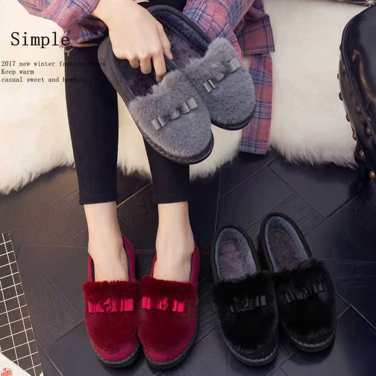 Winter new fur shoes women's bag heel warm and suede moon cotton shoes students Home Han version One foot pedal bean-bean shoes