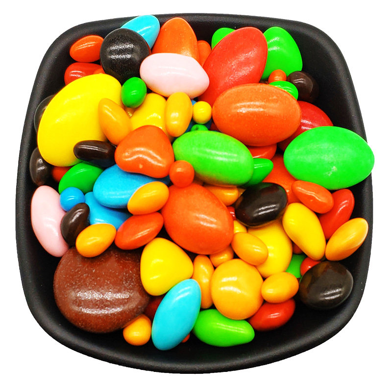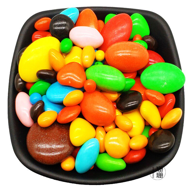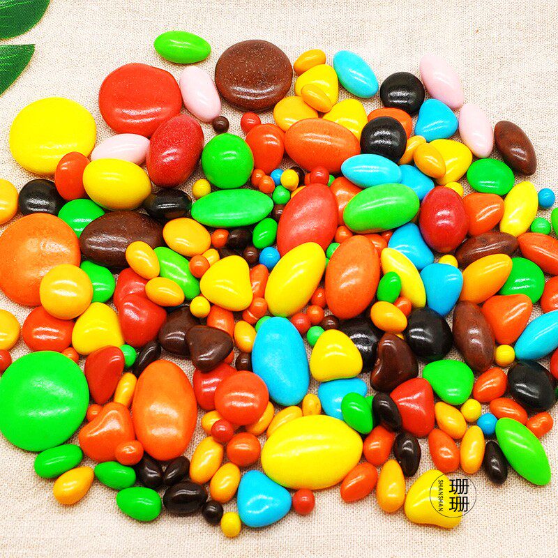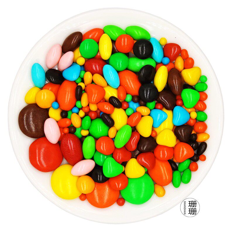 Seven colorful little raw chocolate bean cake baked and decorated with colorful chocolate 80 back nostalgic candy childhood snacks