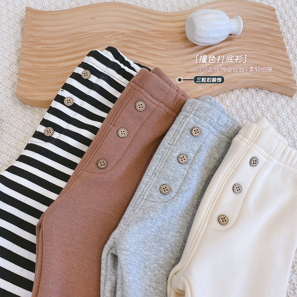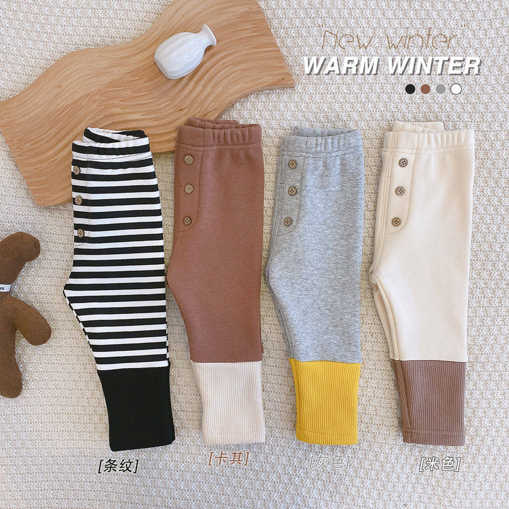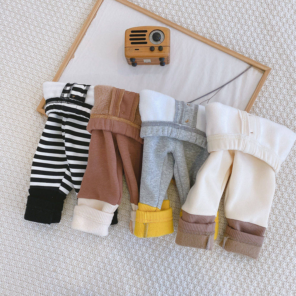 Small and middle girls punched pants and wear children's elastic pants plus fluff gas elasticity boy baby leisure long pants