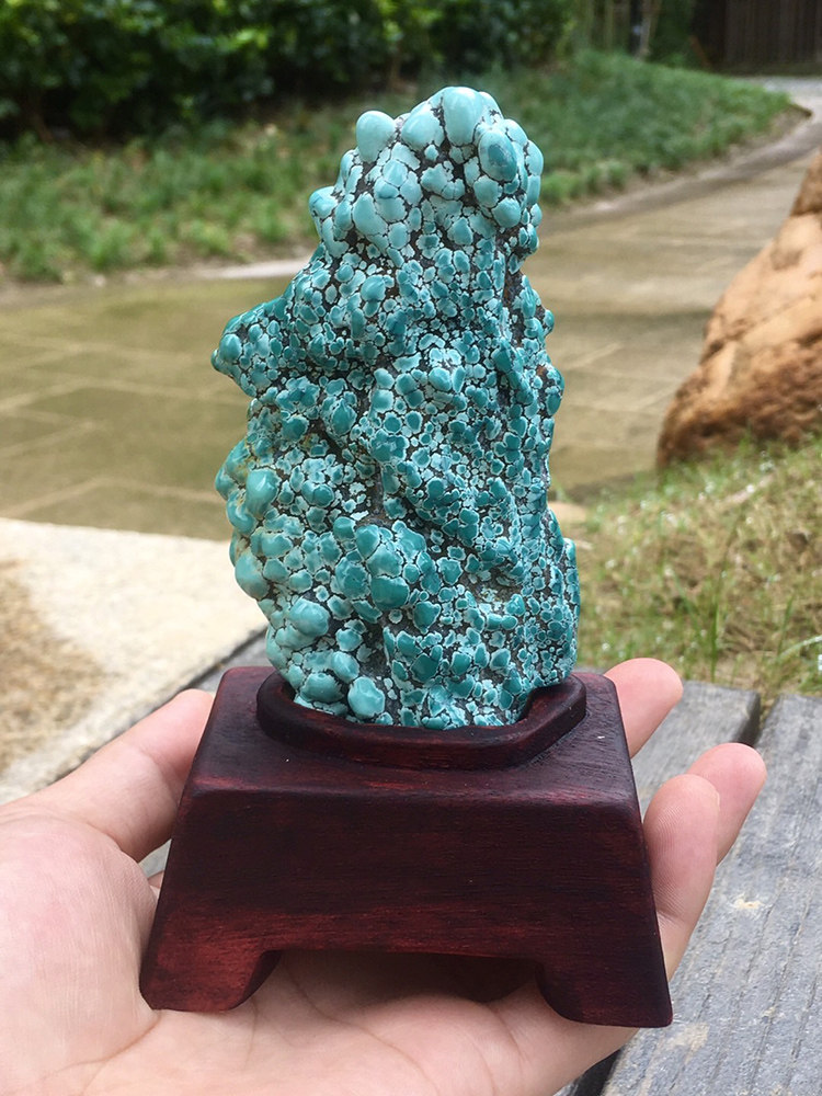 Natural turquoise raw stone small ornaments follow-shaped landscape ornamental stone desktop jade small table high porcelain net flower material
