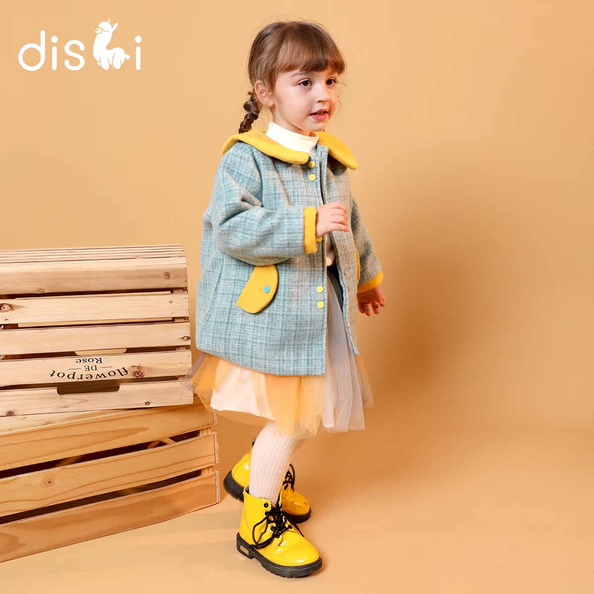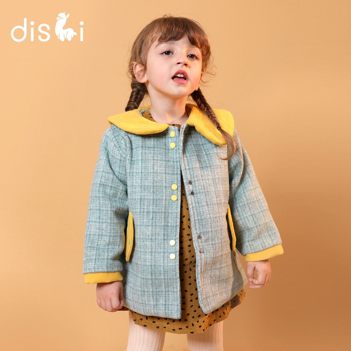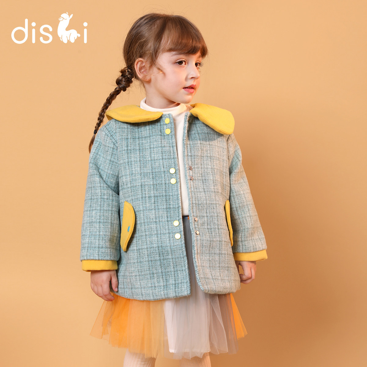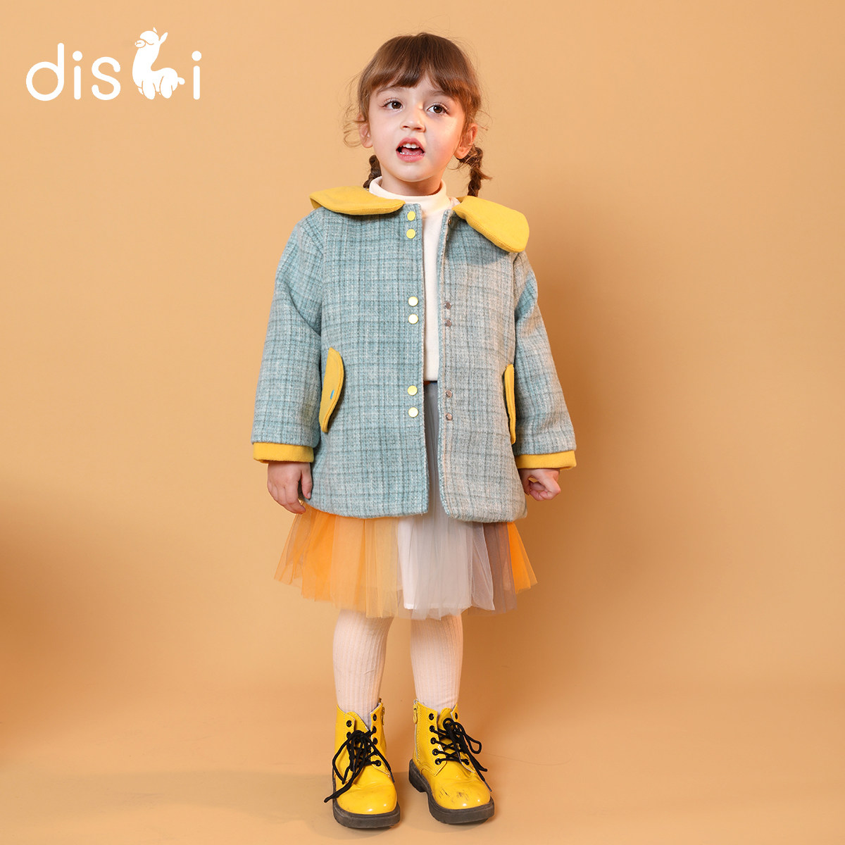 Dick's Girls Coat Fall/Winter 2021 New Kids Foreign Contrast Mid-Length Thick Tweed Coat Coat