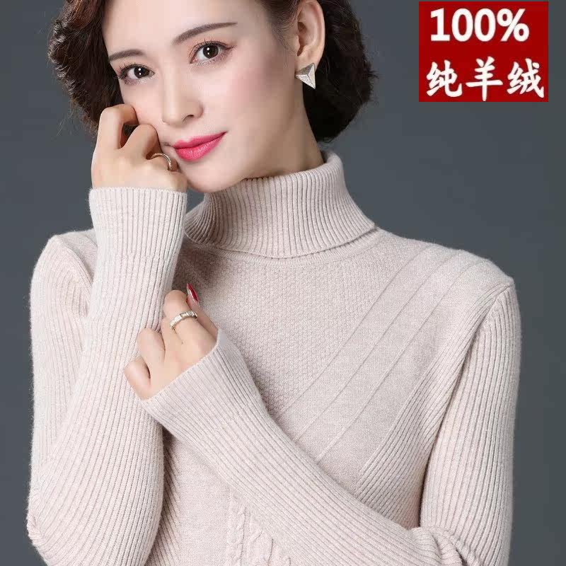 Winter new ladies middle-aged moms dress 100% pure cashmere sweatshirt with high collar bottom knit goat sweater sweater