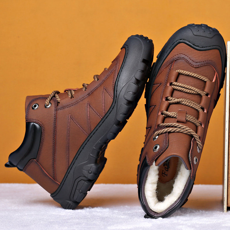 Large size cotton shoes men genuine leather winter Martin boots fur integrated plus suede thickened warm non-slip Dad shoes snowy boots