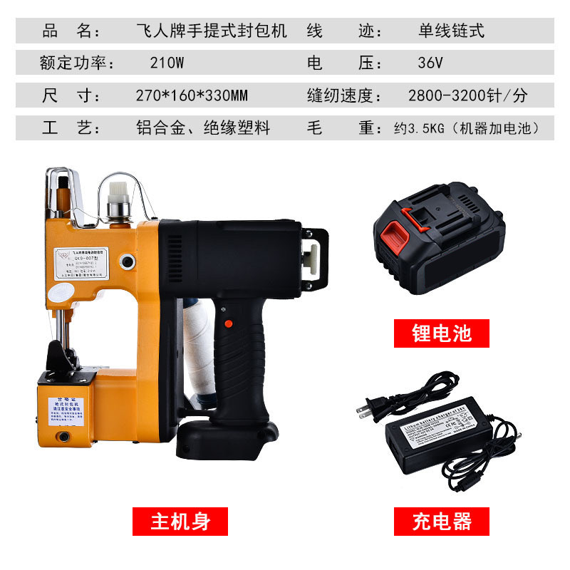 Flying man brand portable sewing machine electric lithium battery wireless sealing machine rice bag woven bag sealing machine small charging