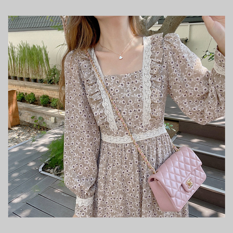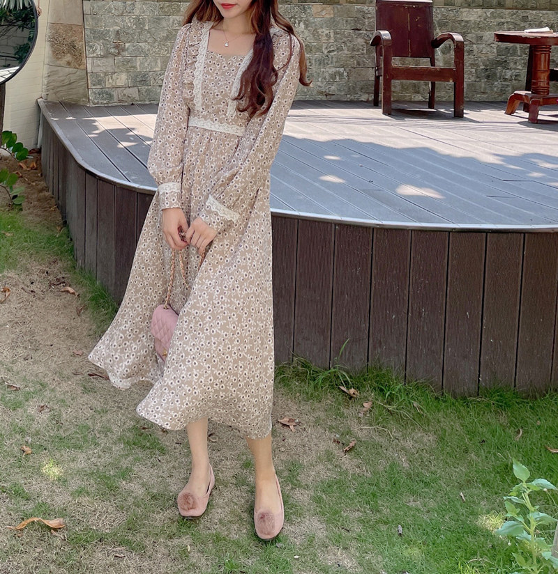 MOBAI Homemade Winter Gentle Floral Dress Women's 2022 Autumn/Winter Bottoming Mid-Length French Dress