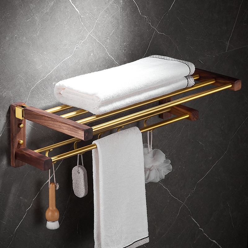 Solid wood folding bath towel frame with rack-free wall-mounted bathroom towel frame for household creative towel collection layer