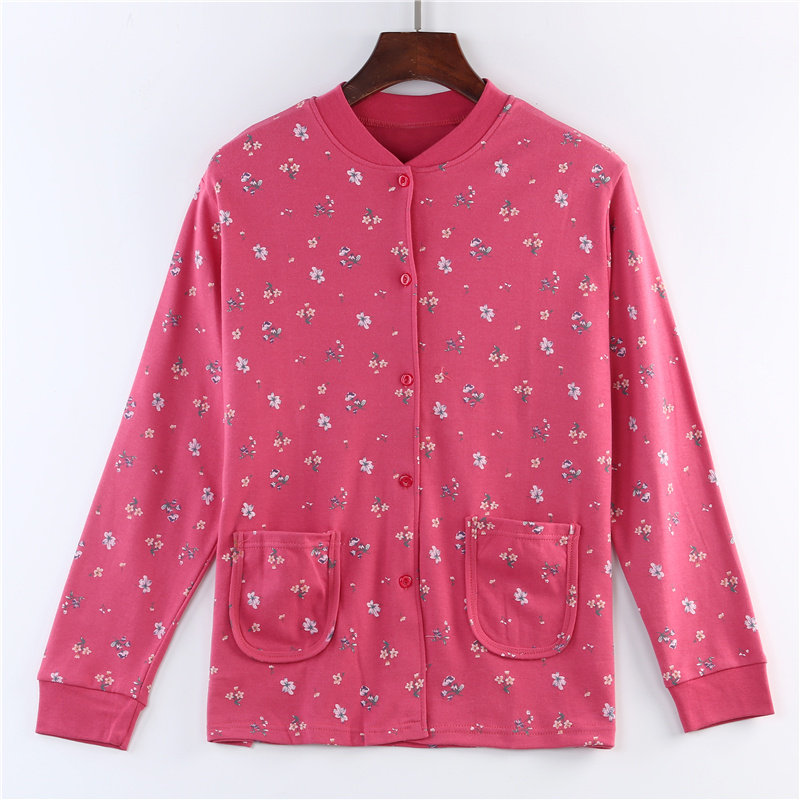 Three-shot middle-aged and elderly thermal tops women's pure cotton plus fertilizer plus size cardigan cotton wool cardigan mother underwear long sleeves