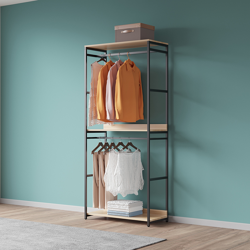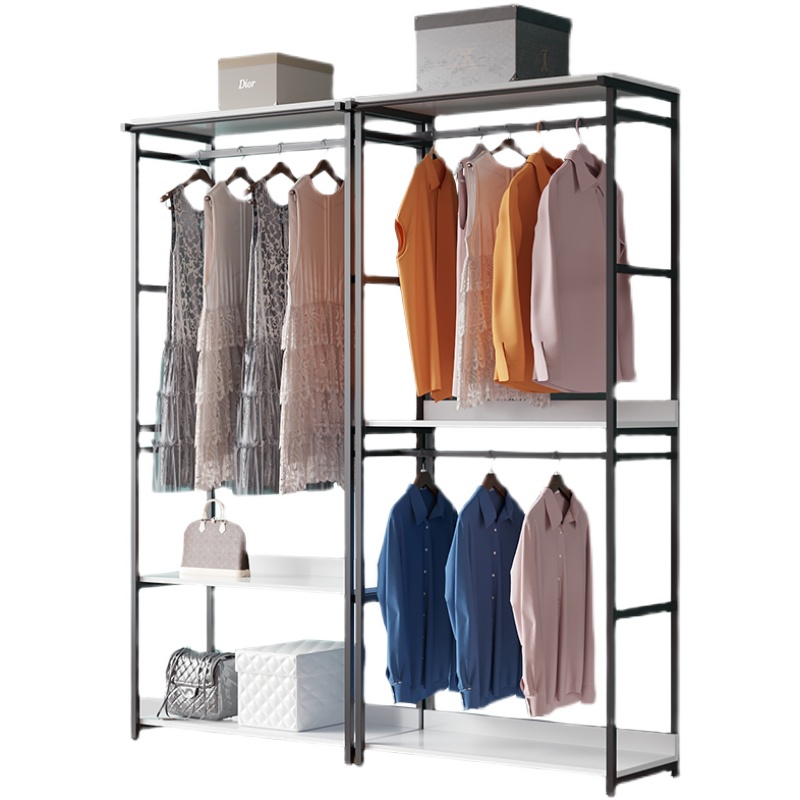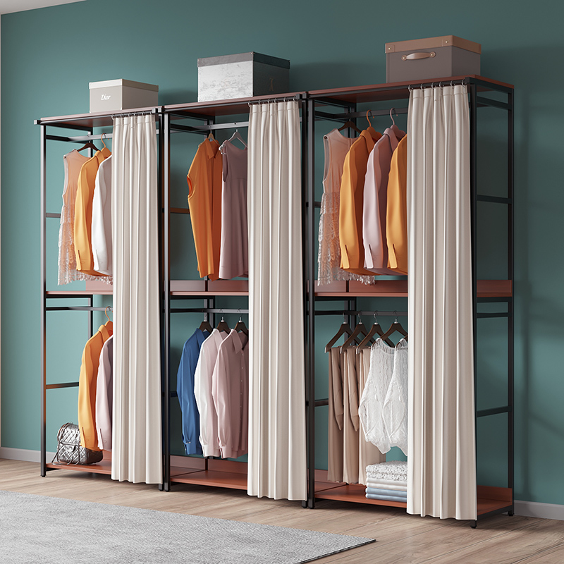 Bedroom coat rack simple double-layer clothes rack with curtain net red clothes rack mobile wardrobe metal custom rack