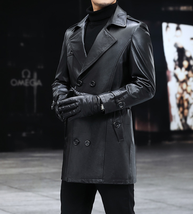 Haining Head Bull Leather Fur Dress Men's Wearkshirt Suite Collar Medium-Large Press Jacket