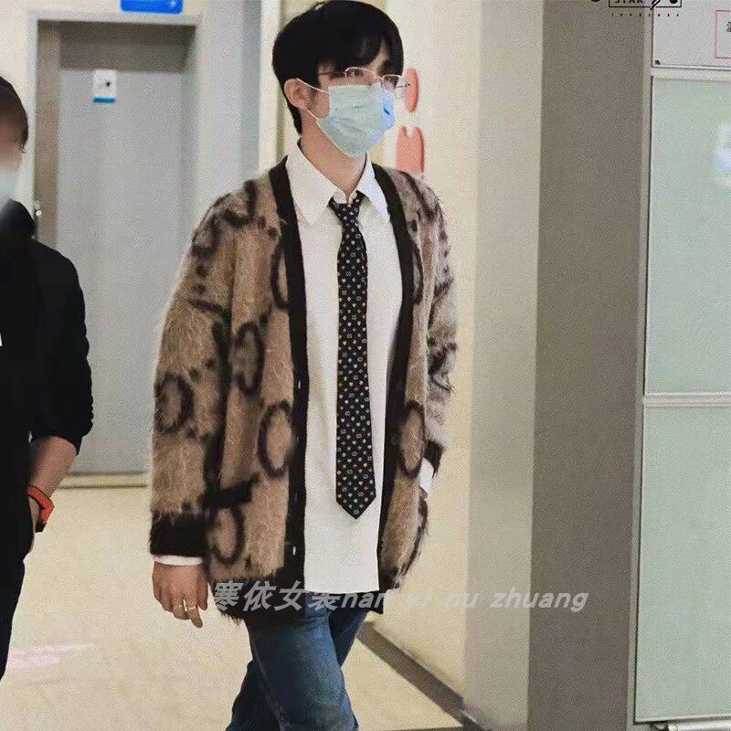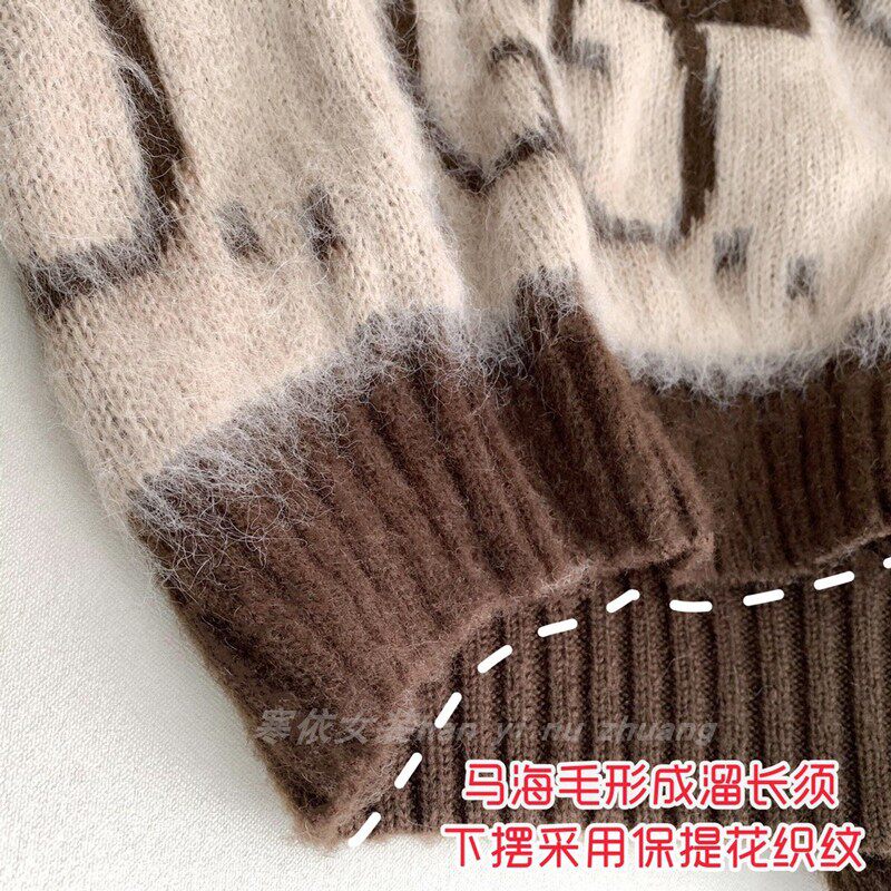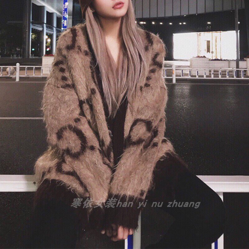 22 Spring autumn new Yang power Ni Ni Ni Ni Tongan Ma Haimao sweater cardio-hoodie brown loose Lazy Wind Knit Jacket