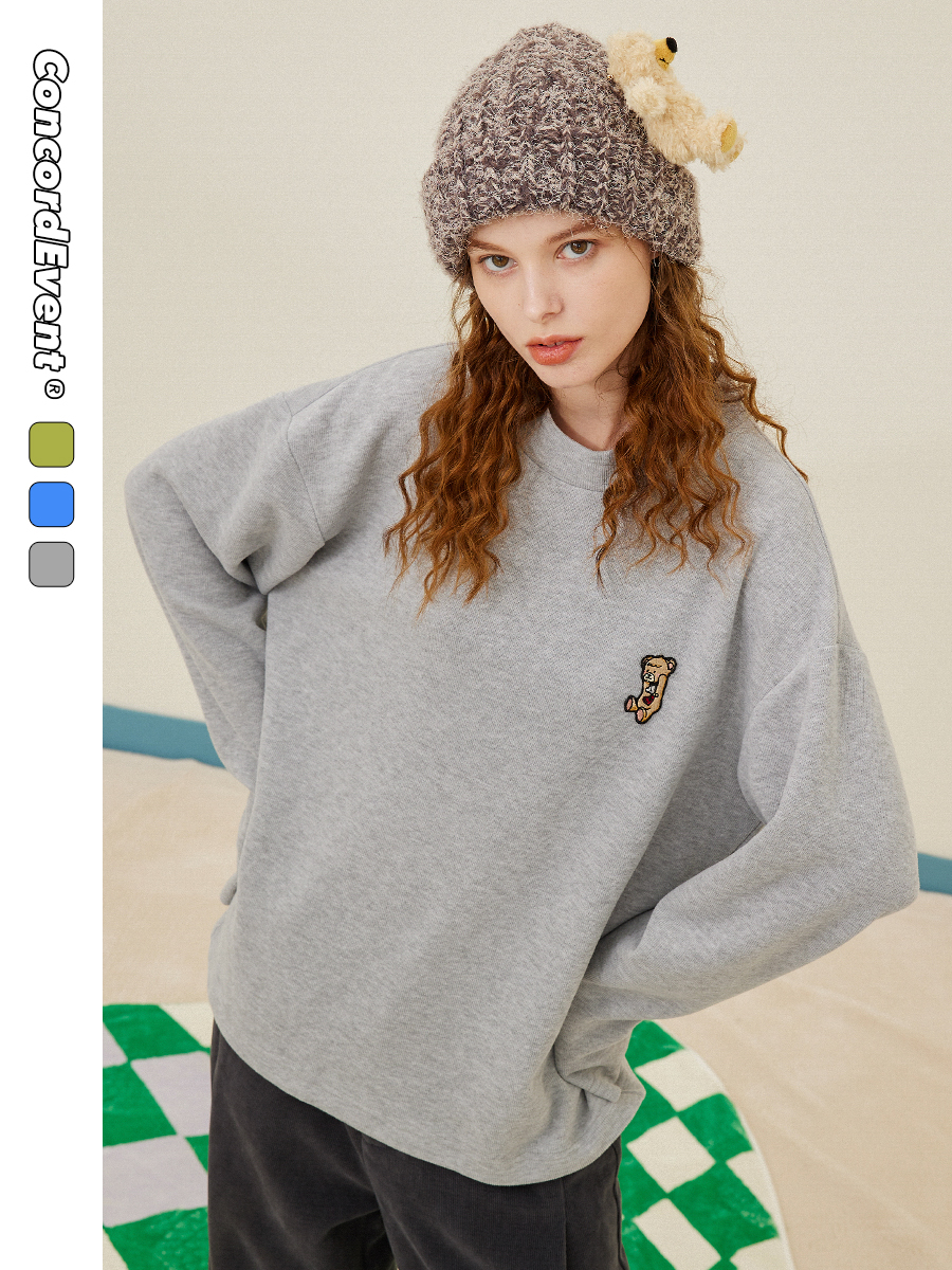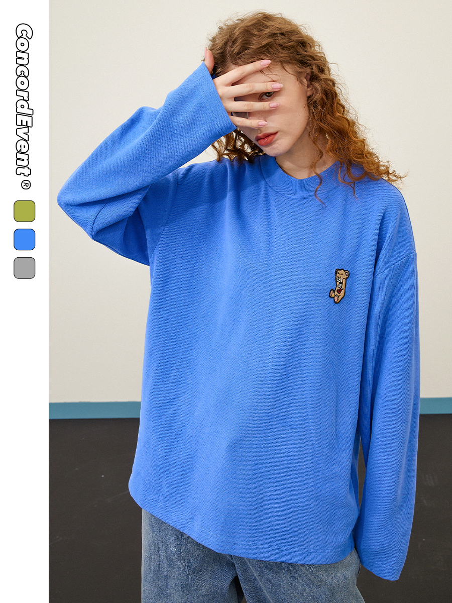CONCORDEVENT2022 new spring and autumn bear embroidery round neck couple outfit bottoming long-sleeved T-shirt men's top