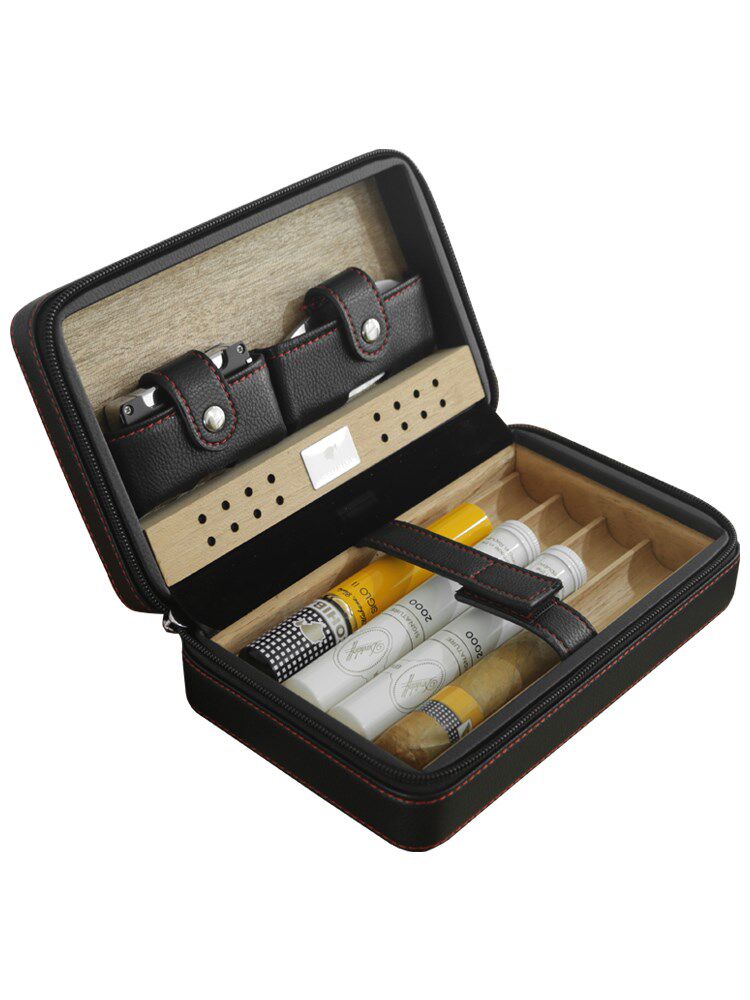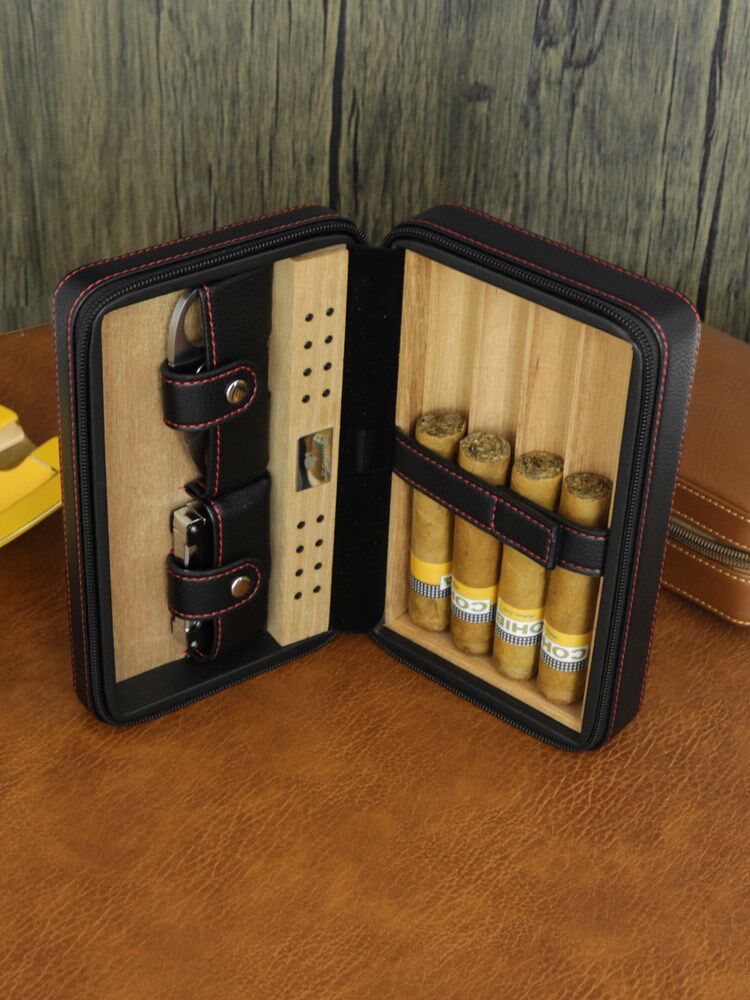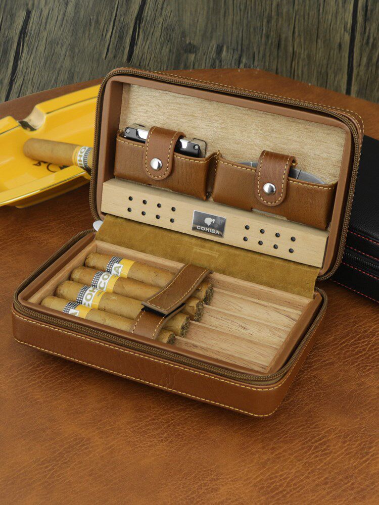 Cigar moisturizing bag portable cigar case with special scissors lighter tool set of snow pine wood