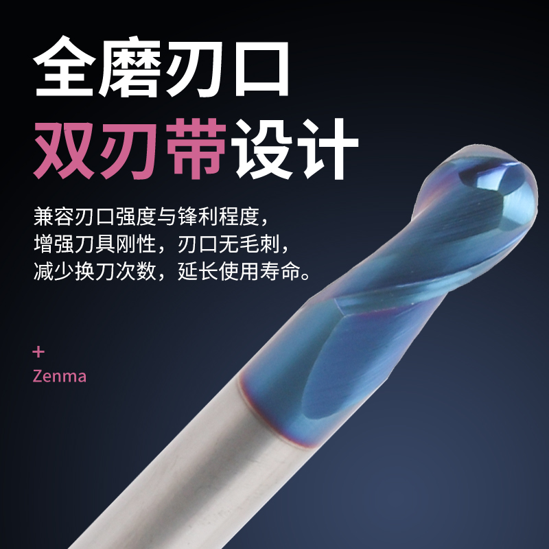 Mingda 65 degree tungsten steel ball cutter stainless steel milling cutter 2 - edge tungsten steel ball - head vertical milling cutter
