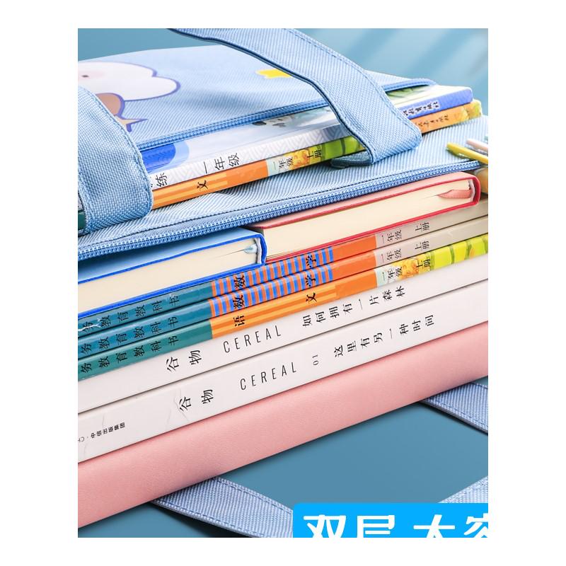 Tutorial bag A4 File bag Lacnecklace Style Large Capacity Portable Kit Multilayer Double student with exam paper collection bag Oxford cloth production checked medical history collection bag elementary school student cute cartoon boy woman