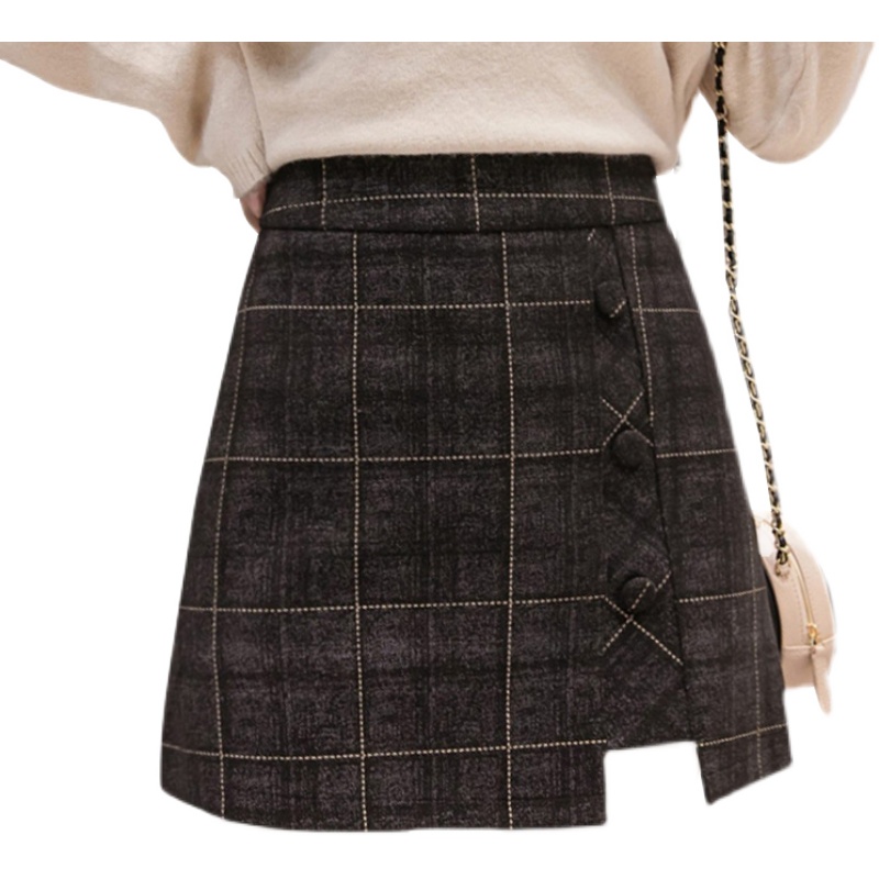 Grey hairy plaid half body dress Short autumn and winter clothing little sub fashion Skinny High Purse Hip a word short skirt woman