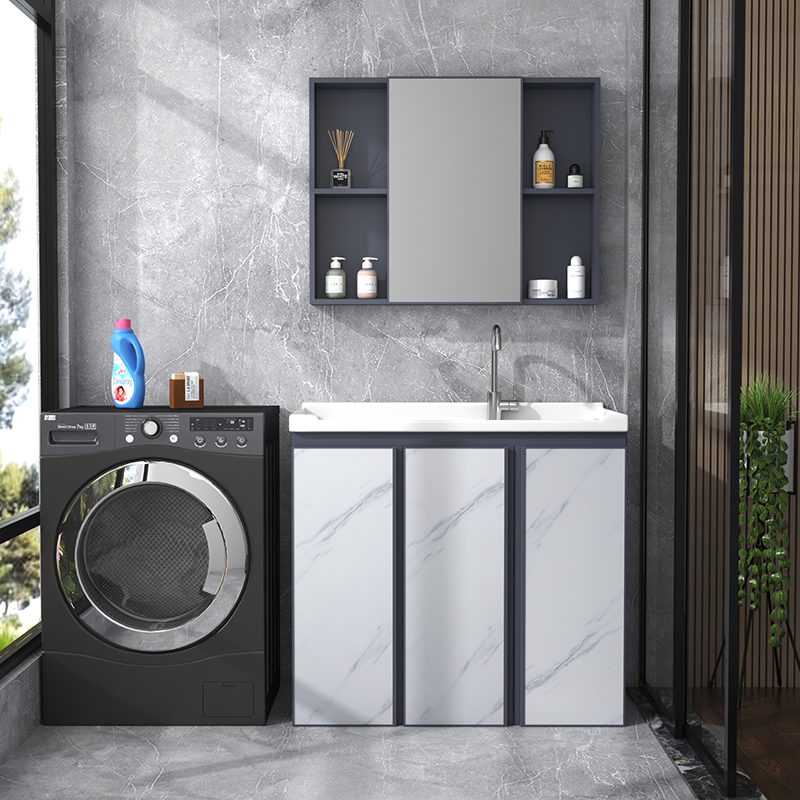 Outdoor floor cabinet washing hand integrated basin space aluminum washing wardrobe balcony washing pool with washboard ceramic washing basin