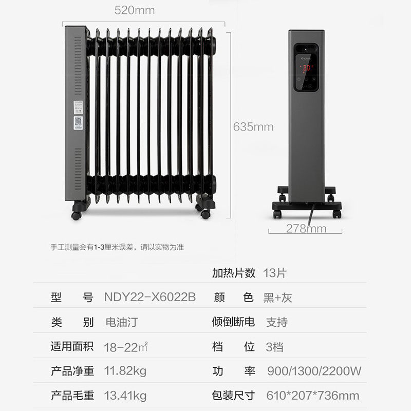 Gli intelligent WIFI warmer home 13 slices of electric oil Ting electric heating sheet bedroom dry clothes NDY22-X6022B-Taobao
