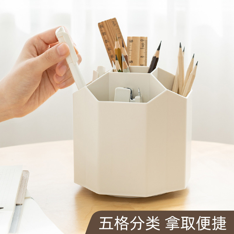 360 Degrees Rotating Pen Holder Five G Large Capacity Minimalist Modern Wind Office Desktop Containing Box Creativity Ins Cute Children Girls Girls Girls Boys' Multifunction Pen Barrel Students Creative Personality