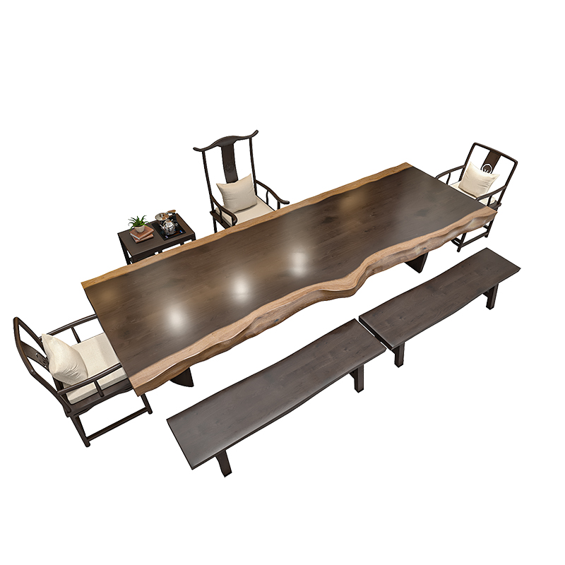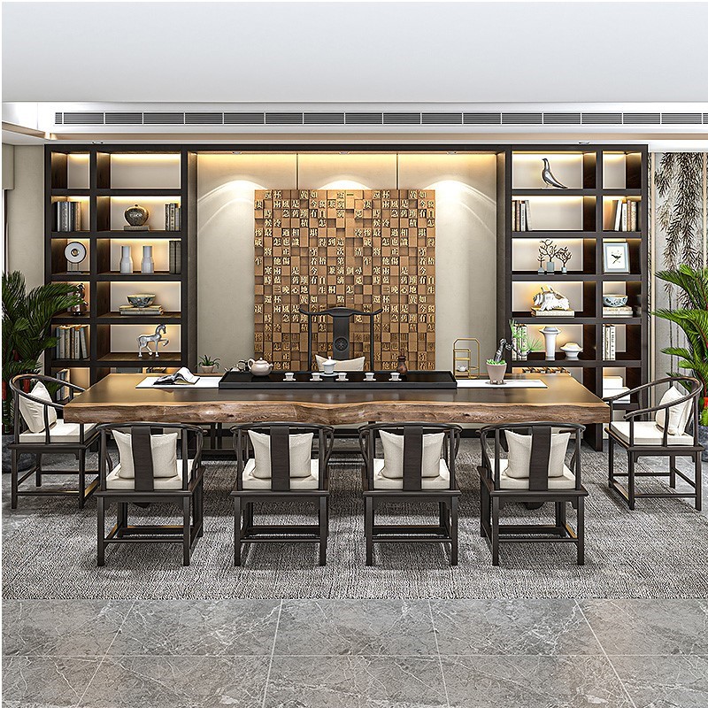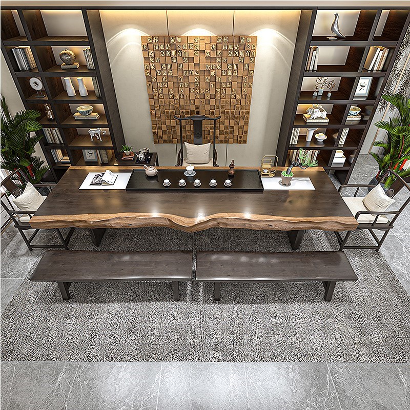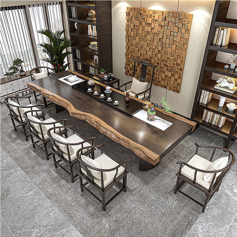 Log large board table office boss table solid wood coffee table tea table tea table and chair combination new Chinese kung fu tea table
