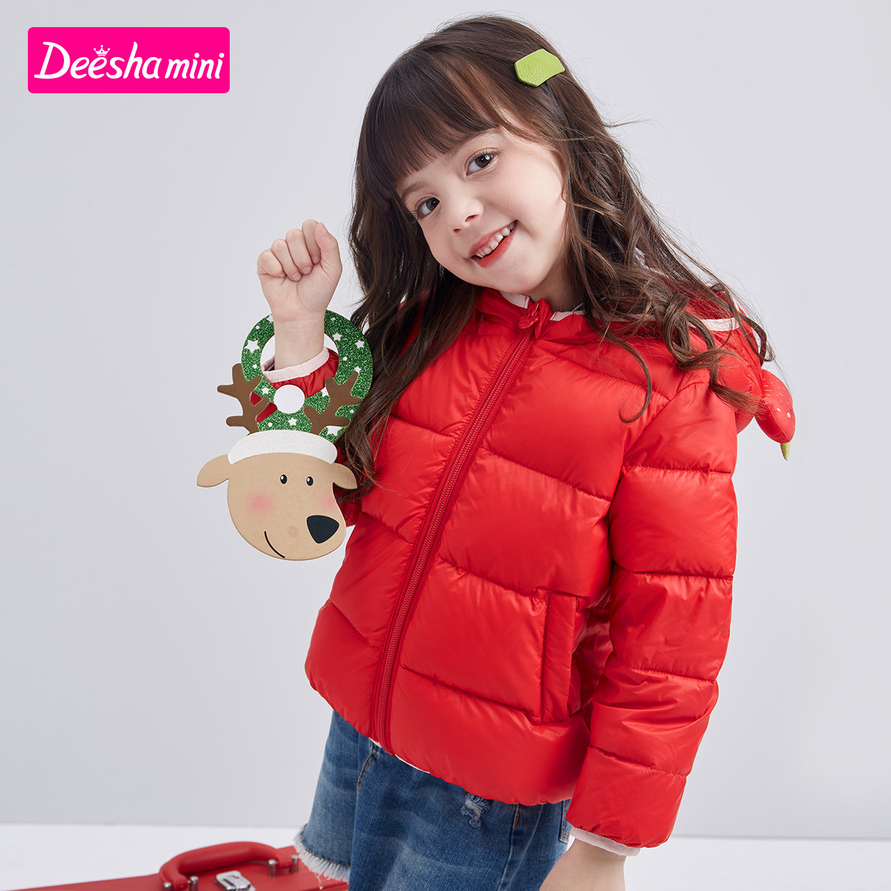 Bagpipe Girl clothing Girls light and thin down clothes 2021 Winter new baby New Year's New Year Cute with cap down jacket