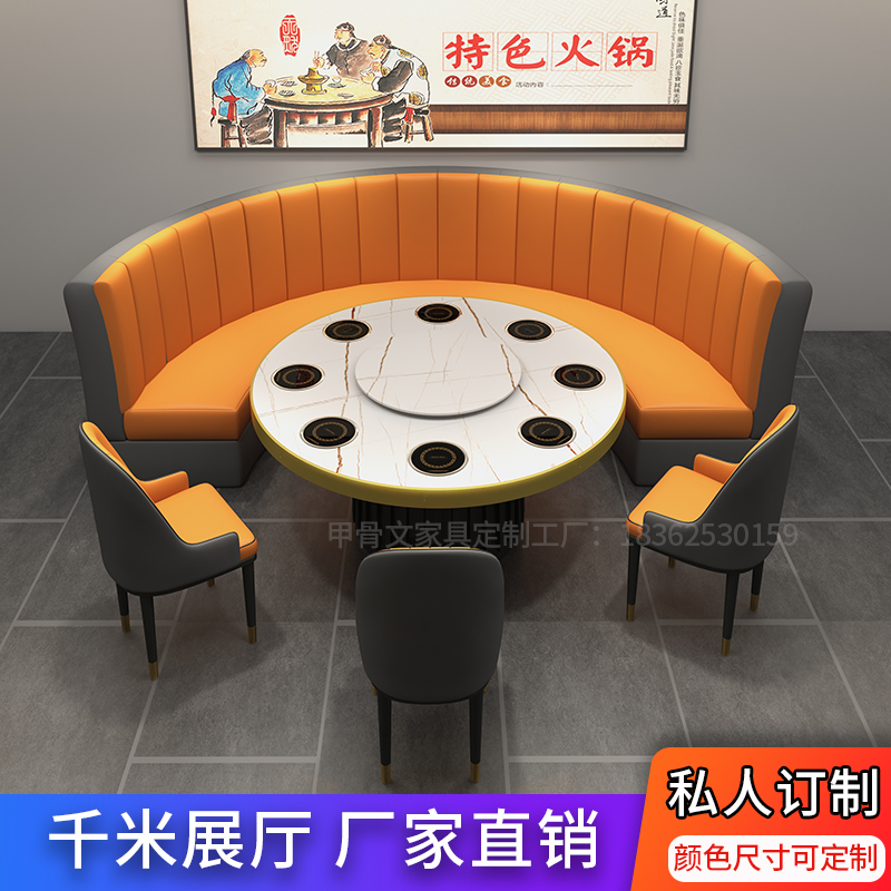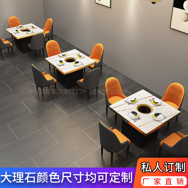 Hot pot table induction cooker integrated one pot of marble hot pot rock plate barbecue table and chairs for four people Table commercial