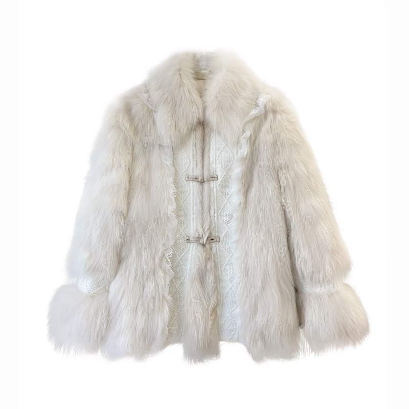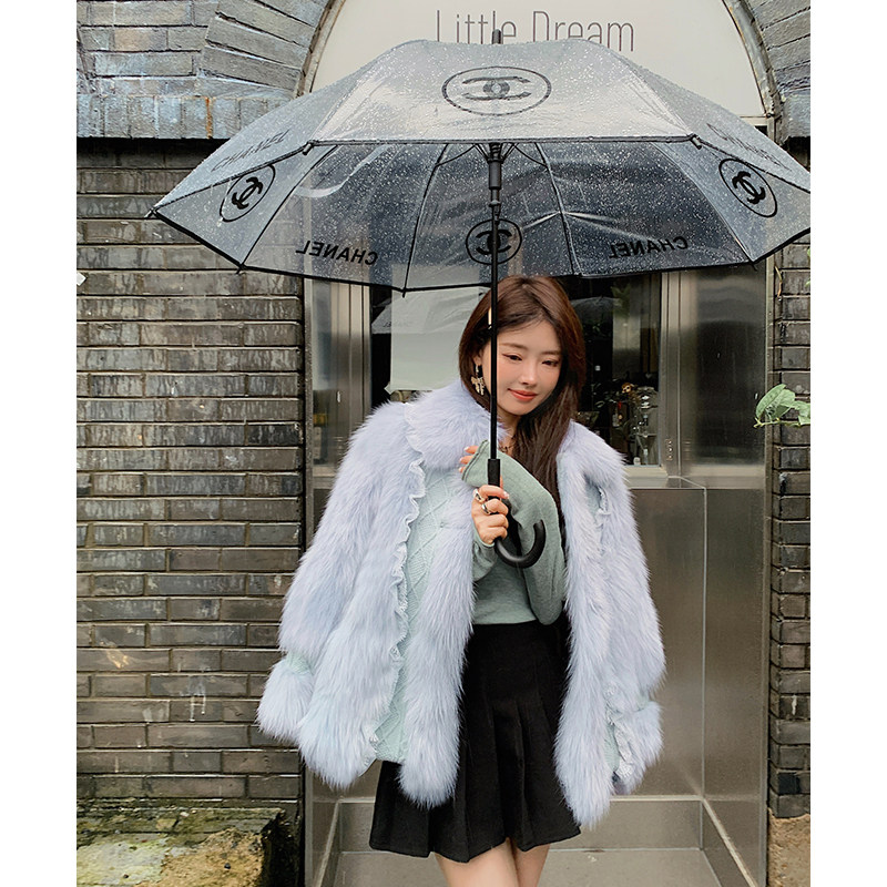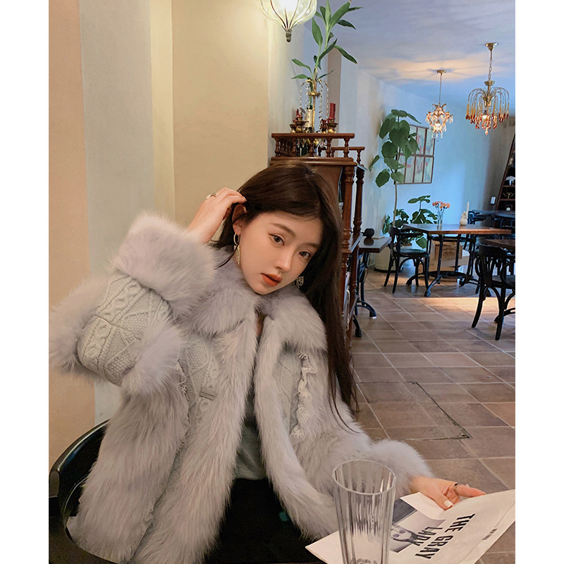 Derris's "Softness Rule" new lace splicing lace together fox fur coat young woman