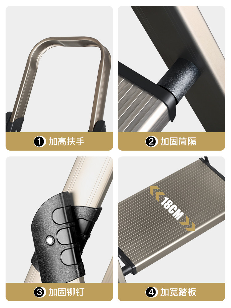 (Iron-aluminum material) frosted black-four-step ladder (thickening upgrade) champagne gold-four-step ladder (thickening upgrade) champagne gold-five-step ladder