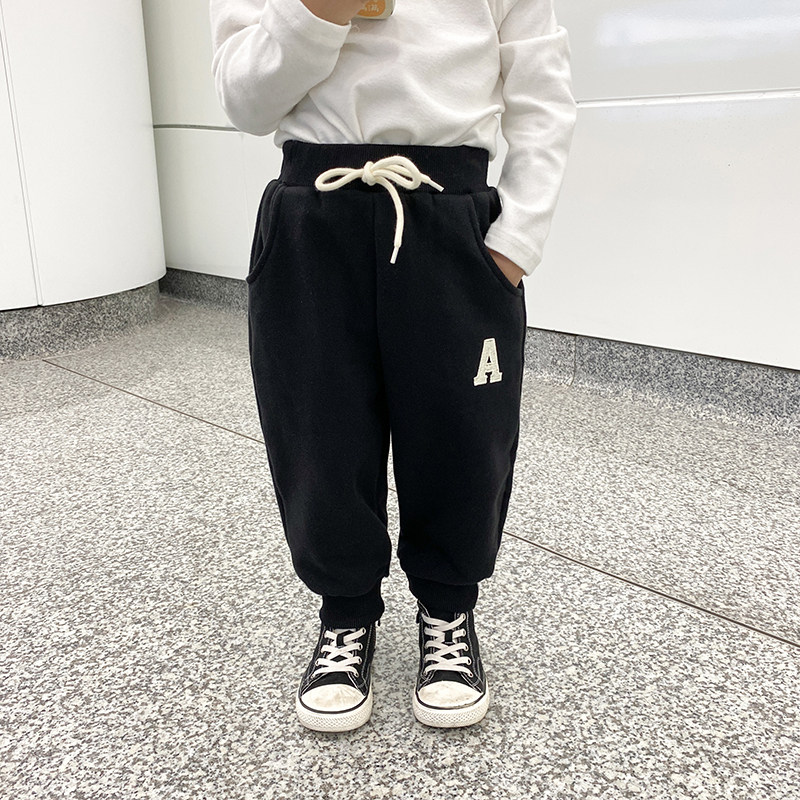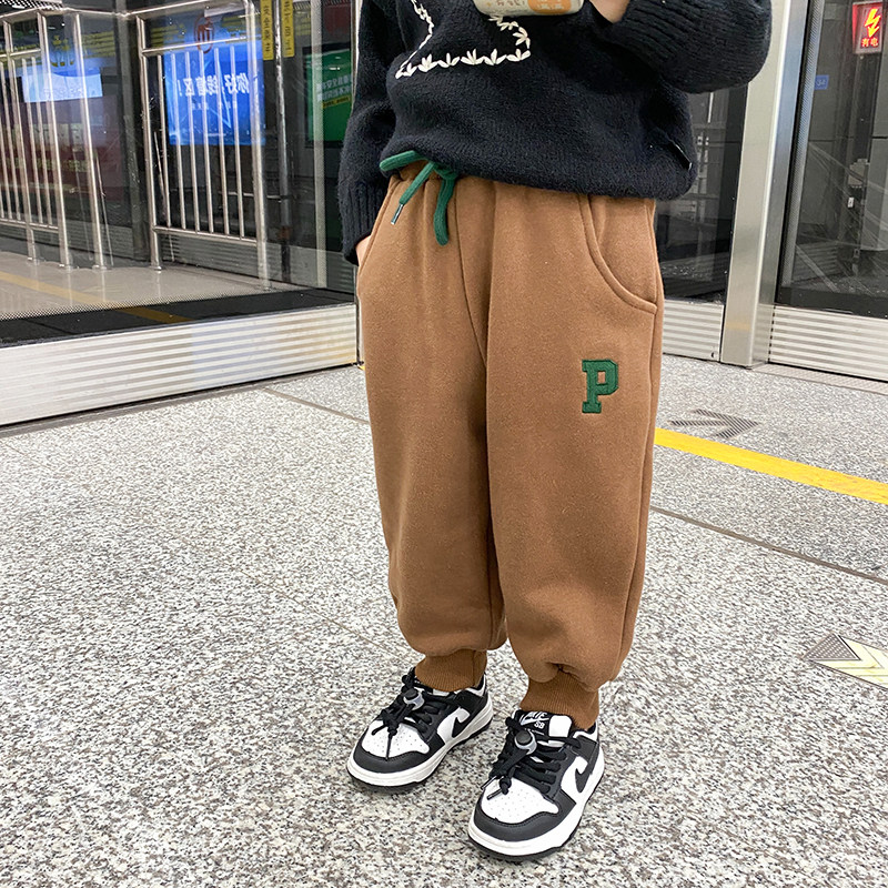 Boys sports casual pants letter embroidery autumn and winter children's fleece sweatpants children's winter clothes boys fleece pants