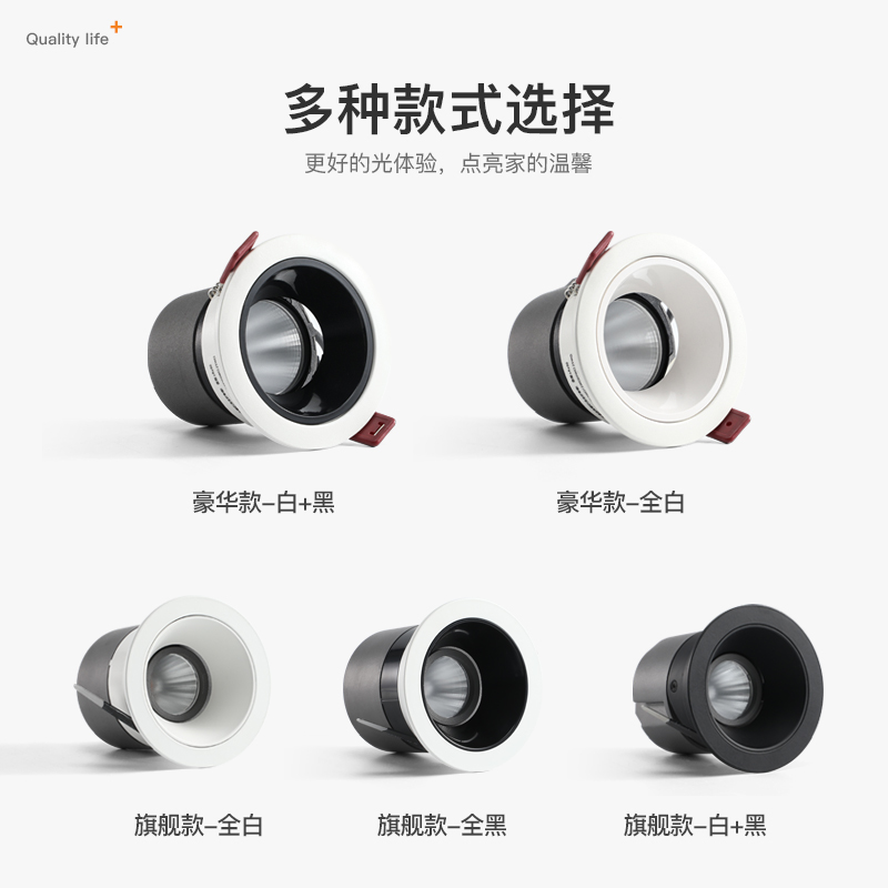 Anti-glare spotlight embedded ceiling light hole light living room bedroom without main light spotlight wall washer light cob downlight aluminum