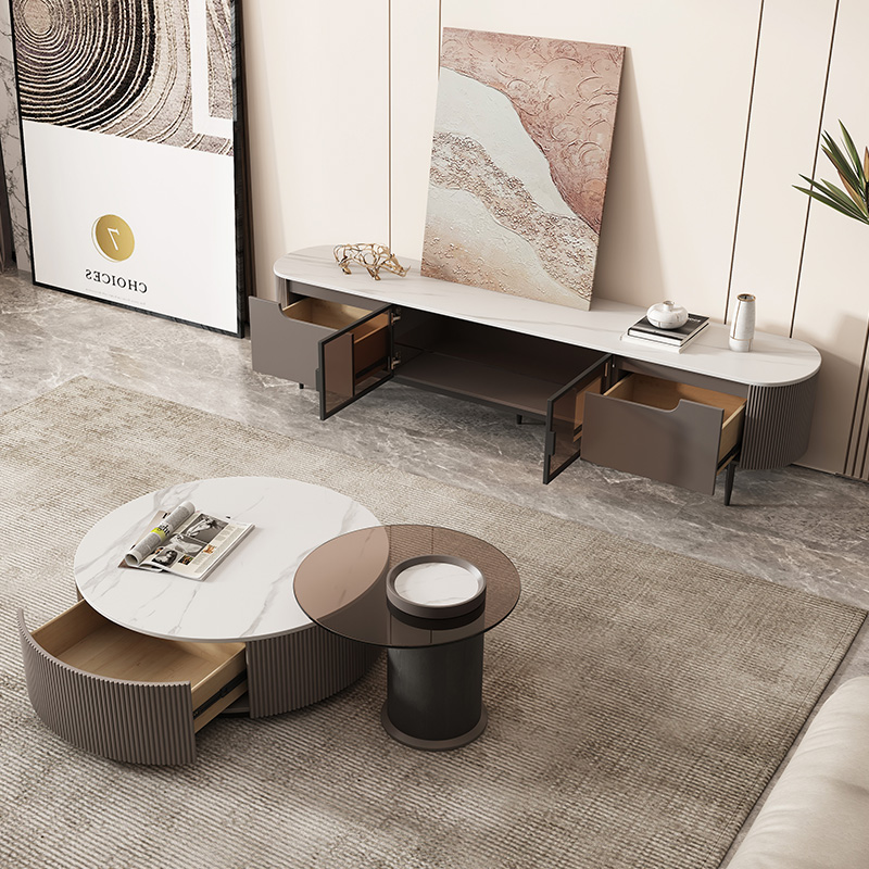 Luxury family modern light luxury TV cabinet coffee table combination living room small apartment slate floor cabinet designer furniture