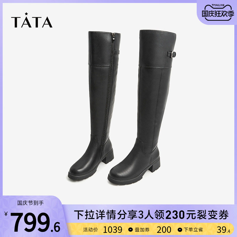 Tata he she mall with the same winter fashion casual square heel all-match riding boots high-top women's boots new 6IK01DC1