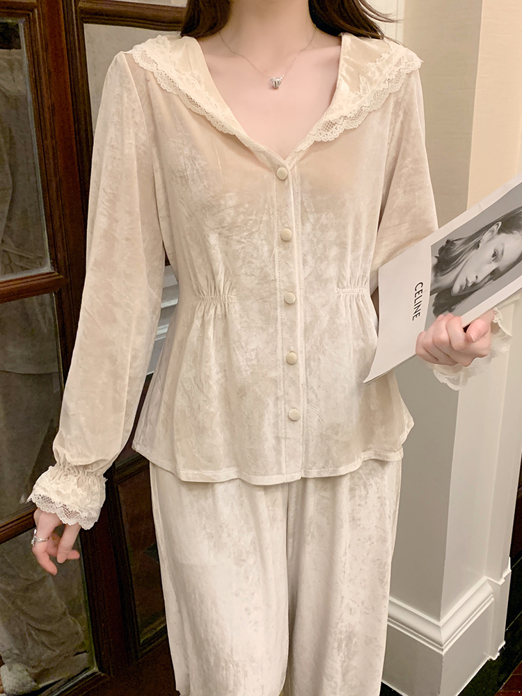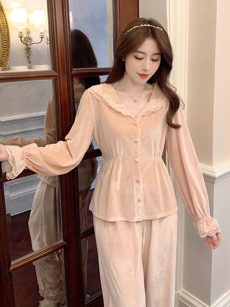 MAJE MANTAS gold velvet pajamas women's spring and autumn temperament long-sleeved sweet princess style winter homewear suit