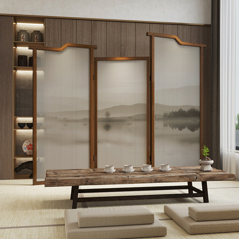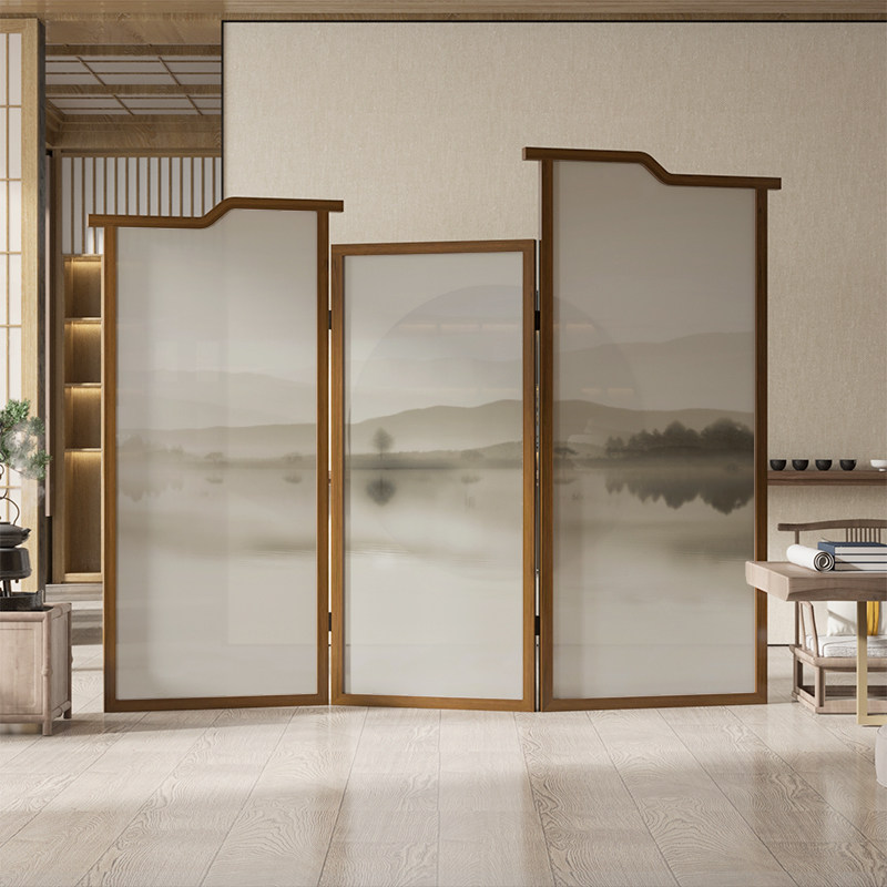 Chinese style screen partition mobile folding room stacking living room sheltering minimalist folding screen bedroom hotel tea room decorated with wooden seat screen