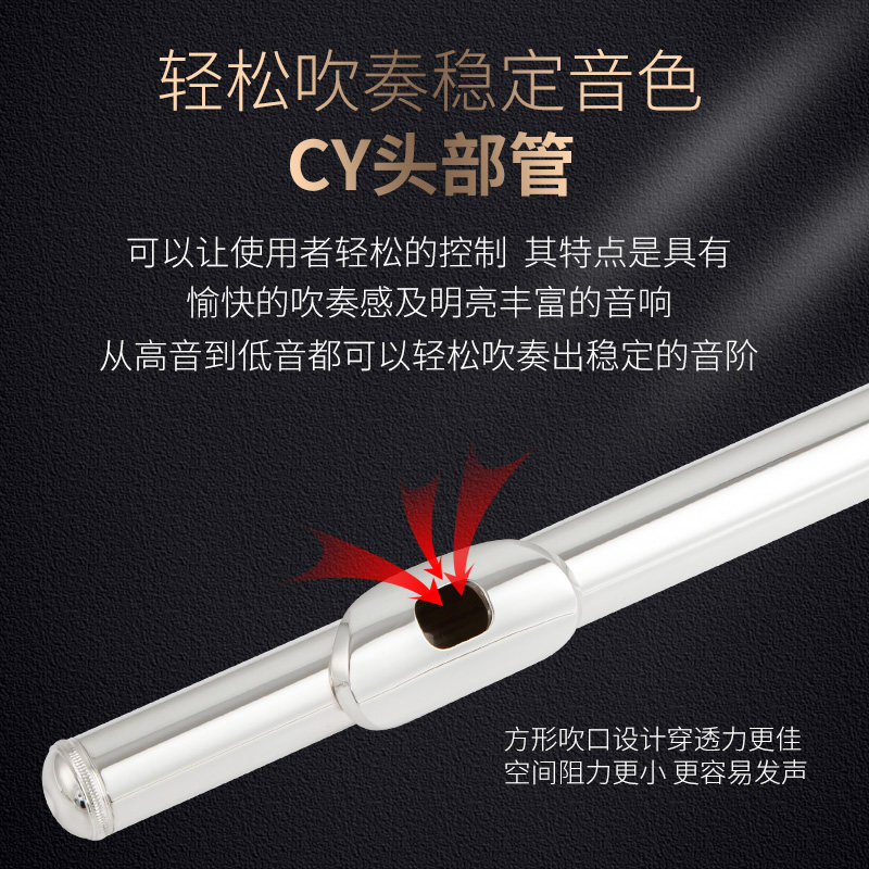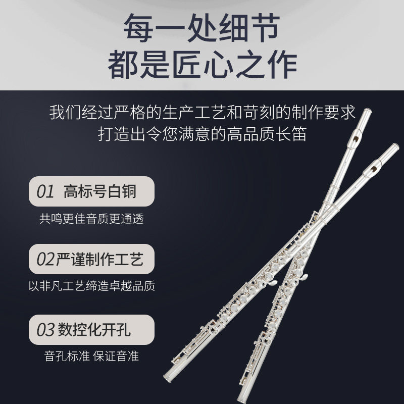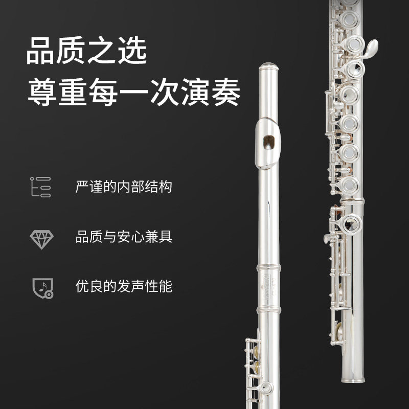 Song Sansmann C tone 16 17 key closed drilling long flute instrument white brass nickel-plated silver beginner adult children's examination performance